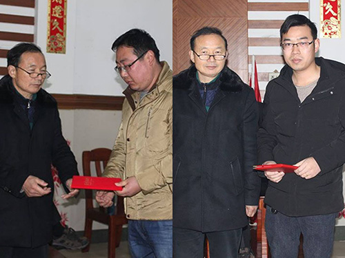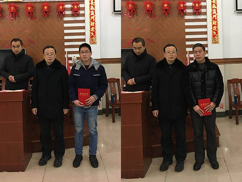 公司还表彰了在2018年度取得成绩的先进个人和优秀班组,潘副总向大家宣读了表彰名单,获奖人员依次领取荣誉证书和奖金,并合影留念。