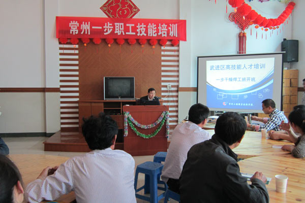 培训班上公司董事长查国才作重要讲话,查总对郑陆劳动所长期以来对公司的支持和帮助表示衷心感谢,对承担本次培训老师常州工程职业技术学院表示感谢,同时希望参培人员认真学习,认真听讲,认真思考,学以致用,不断提高自身的技能水平,为企业实现品牌战略,做精、做强、做大企业做出应有的贡献。